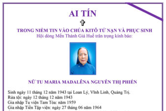 Ai tín của Hội Dòng Mến Thánh Giá Huế: Nữ tu Maria Madalêna Nguyễn Thị Phiến