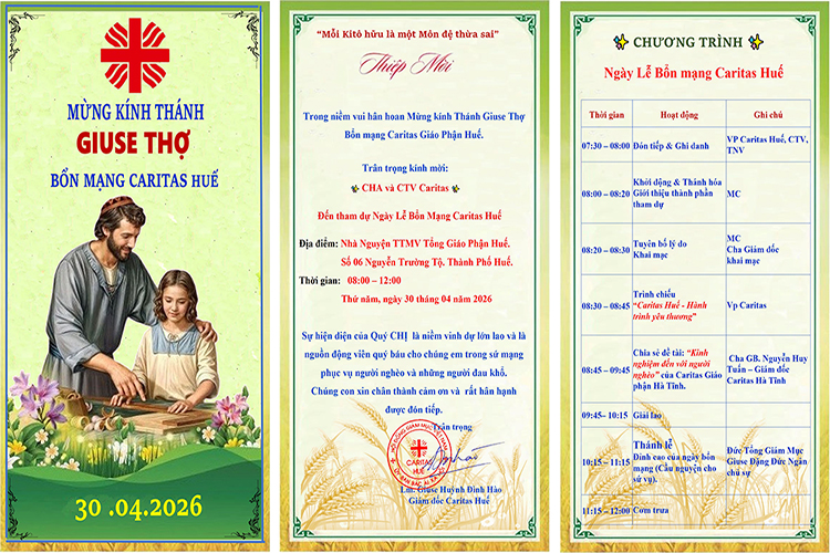 Thiệp mời Ngày Lễ Bổn Mạng Caritas Huế dịp Lễ Thánh Giuse Thợ