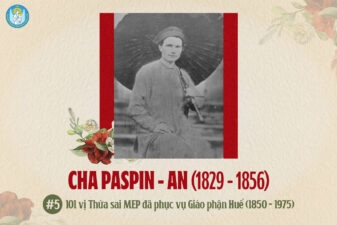 Tiểu sử 101 vị Thừa sai MEP đã phục vụ Giáo phận Huế (1850 – 1975) Số 05. CHA PASPIN (1829-1856) Cha Paspin, Jules-Constant chào đời ngày 11.11.1829 tại Wiseppe (Meuse). Thụ phong linh mục ngày 11.06.1854, rồi…