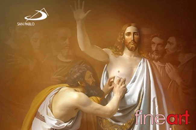 Tám ngày sau, các môn đệ lại họp nhau trong nhà và có Tôma ở với các ông. Trong khi các cửa vẫn đóng kín, Chúa Giêsu hiện đến đứng giữa mà phán: “Bình an cho các con”. Ðoạn Người nói với Tôma: “Hãy xỏ ngón tay con vào đây, và hãy xem tay Thầy; hãy đưa bàn tay con ra và xỏ vào cạnh sườn Thầy; chớ cứng lòng, nhưng hãy tin”. Tôma thưa rằng: “Lạy Chúa con, lạy Thiên Chúa của con!” Chúa Giêsu nói với ông: “Tôma, vì con đã xem thấy Thầy, nên con đã tin. Phúc cho những ai đã không thấy mà tin”.