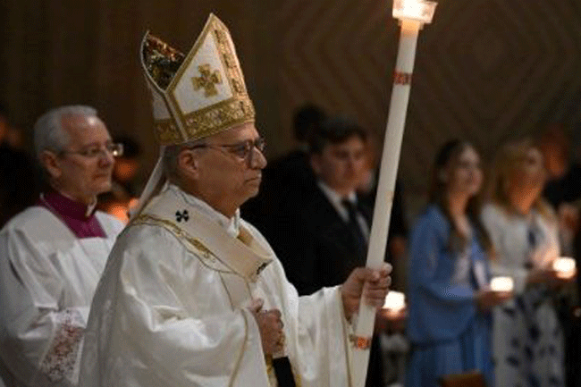 Tối Thứ Bảy Vọng Phục Sinh, ĐTC Lêô XIV đã chủ sự Thánh Lễ với rất đông tín hữu hiện diện bên trong Đền thờ thánh Phêrô, cùng với nhiều người tham dự từ bên ngoài, tại quảng trường thánh Phêrô, qua màn hình lớn. Thánh lễ Canh thức Vượt Qua được mở đầu với nghi thức làm phép lửa và nến phục sinh. Kế đến, một thầy phó tế đã công bố Tin Mừng Phục Sinh. ĐTC Lêô XIV bắt đầu bài giảng sau phần phụng vụ Lời Chúa với 7 bài đọc Cựu Ước, một bài Thánh Thư và Tin Mừng.