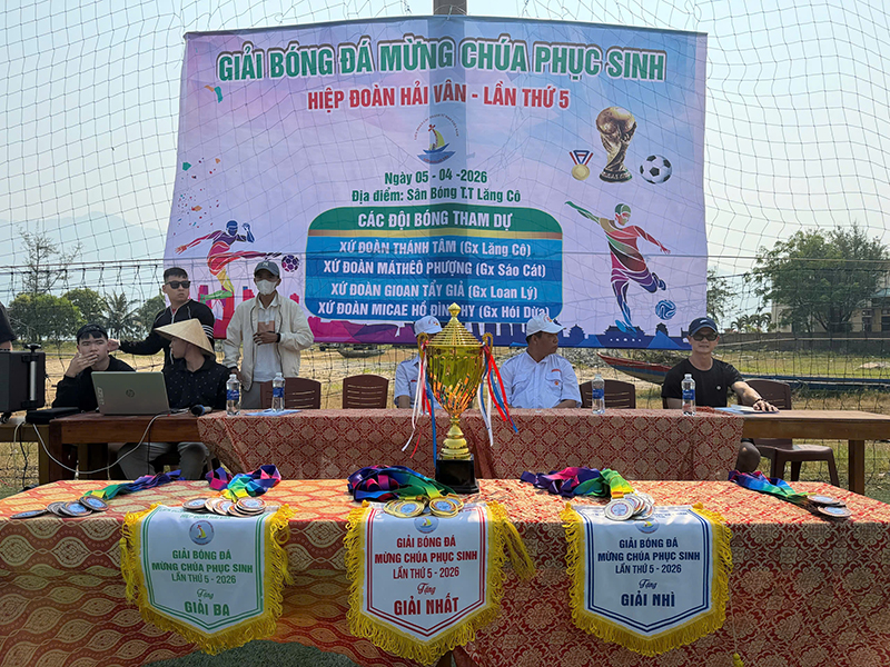 Trong niềm vui của Đại Lễ Phục Sinh và nhằm tạo sân chơi bổ ích, gắn kết tình thân cho các em thiếu nhi, vào Chúa Nhật Phục Sinh ngày 05.04.2026, tại sân cỏ nhân tạo Lăng Cô, các xứ đoàn Thiếu Nhi Thánh Thể Hói Dừa, Lăng Cô, Loan Lý và Sáo Cát thuộc Hiệp đoàn Hải Vân đã tổ chức Giải bóng đá Mừng Chúa Phục Sinh lần thứ 5.