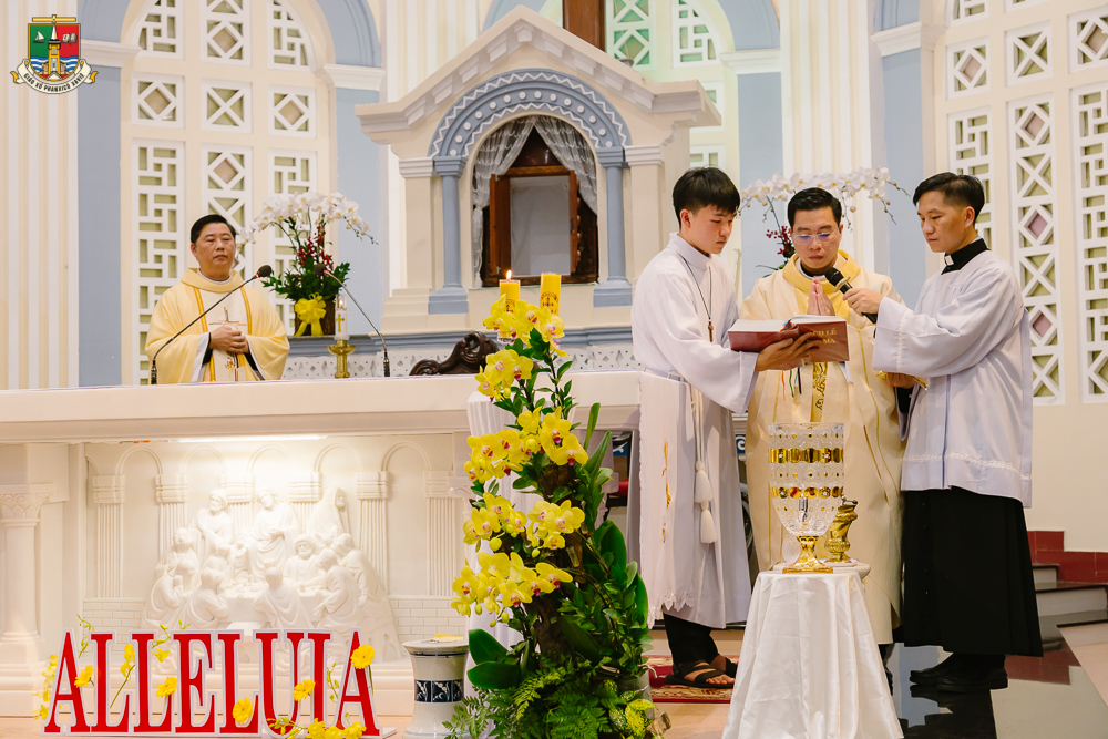 Mở đầu Thánh lễ, Cha Quản xứ một lần nữa nhắc lại tin vui trọng đại Chúa đã phục sinh. Đồng thời mời gọi cộng đoàn tuyên xưng niềm tin ấy, để lời tung hô mầu nhiệm Chúa Phục Sinh đi vào tâm hồn, vào gia đình và vào đời sống của mỗi người.