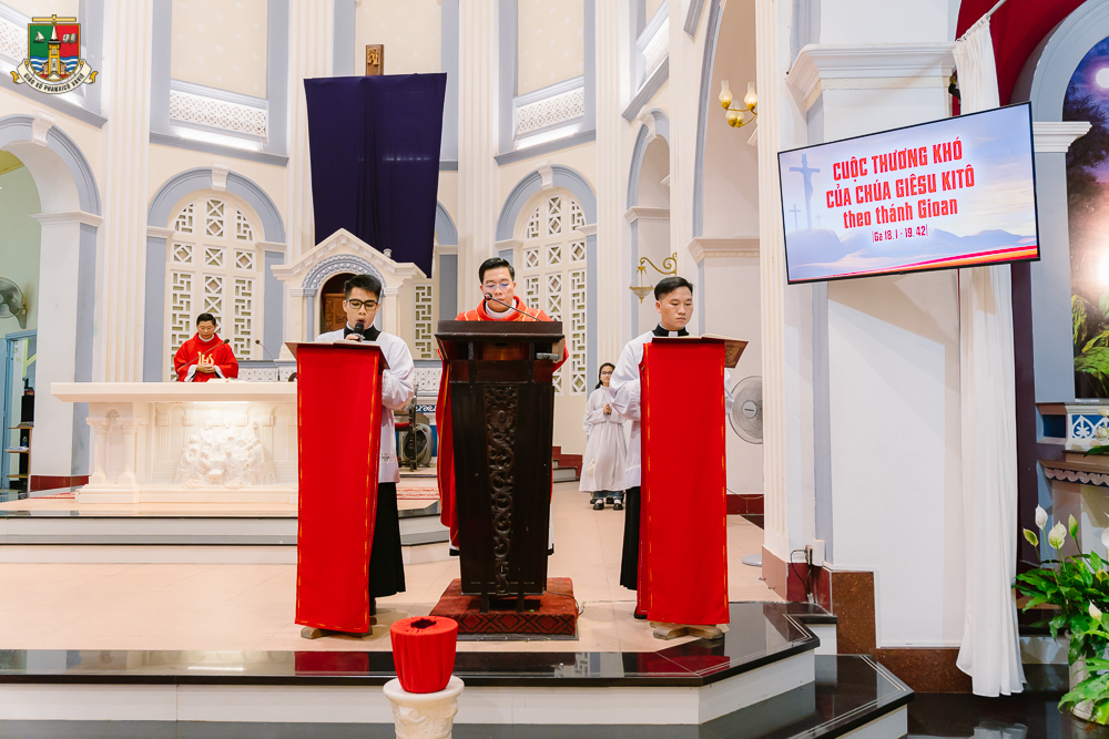 Nghi thức do Cha Phó xứ Giuse chủ sự; mở đầu là phụng vụ Lời Chúa với cao điểm bài Thương khó, giúp cộng đoàn chiêm ngắm tình yêu đến hy sinh mạng sống của Chúa qua từng biến cố; tiếp đến là phần suy tôn Thánh Giá, mỗi tín hữu được mời gọi bày tỏ lòng tôn kính trước dấu chỉ cứu độ, qua việc hôn kính Thánh giá – nơi Chúa đã hiến mạng sống vì nhân loại; phần cuối nghi thức là rước lễ.