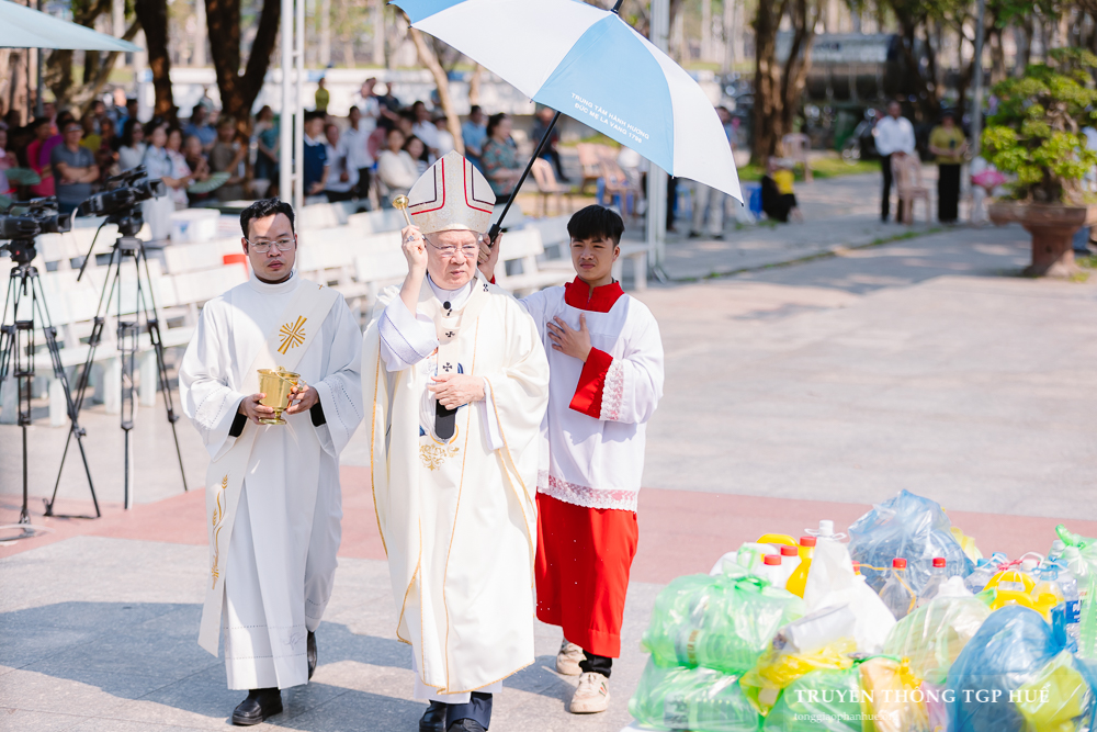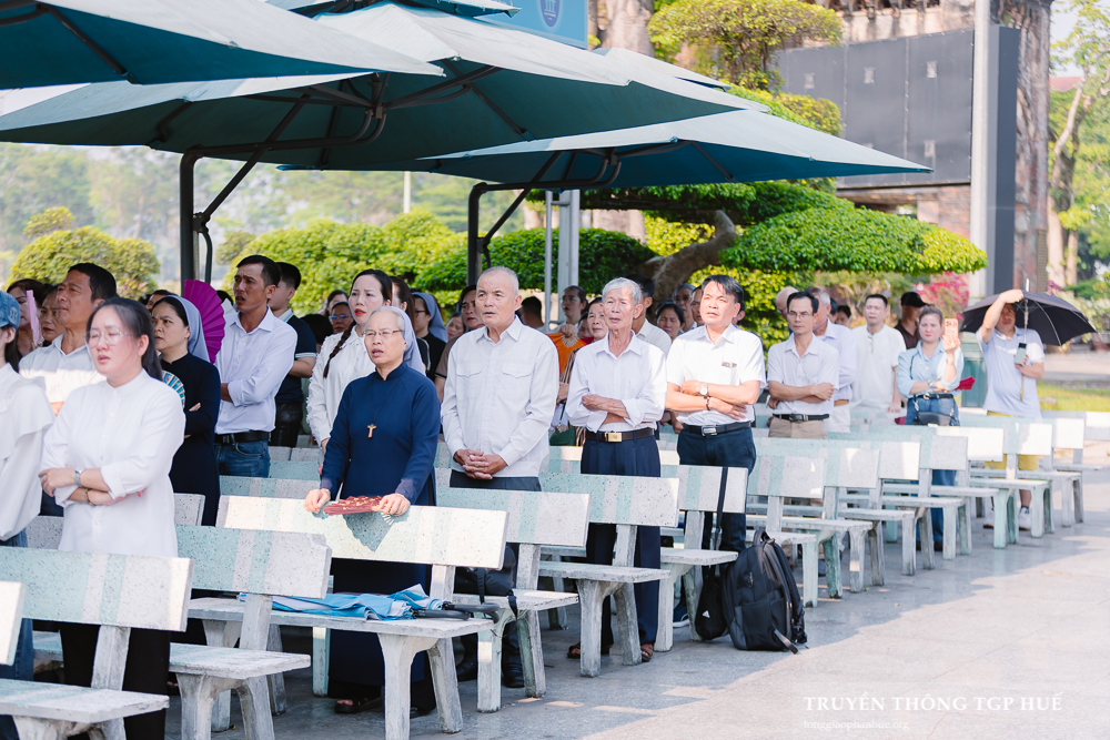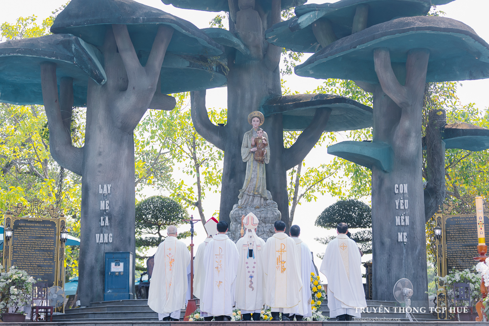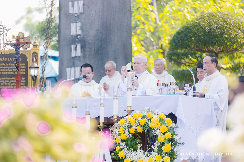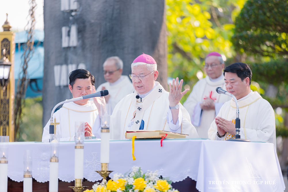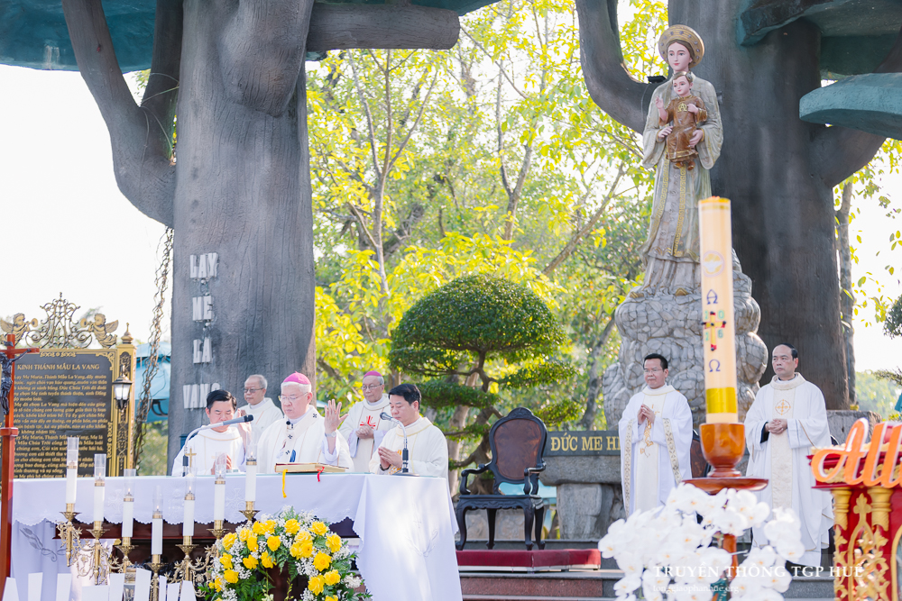Thánh lễ được Đức TGM Giuse Đặng Đức Ngân cử hành lúc 08g00 ngày 11.04.2026, thứ Bảy tuần Bát nhật Phục sinh. Đồng tế với Đức TGM Giuse trong Thánh lễ này có Đức Cha Phanxicô Xaviê Lê Văn Hồng – Nguyên TGM TGP Huế, Cha Barnaba Trần Đình Phục – Tổng Đại diện, quý Đức Ông cùng quý Cha trong và ngoài TGP. Sốt sắng hiệp dâng Thánh lễ có quý Thầy Phó tế, quý Tu sĩ nam nữ, Chủng sinh, anh chị em giáo dân trong TGP cũng như nhiều Giáo phận khác hành hương về bên Đức Mẹ La Vang.
