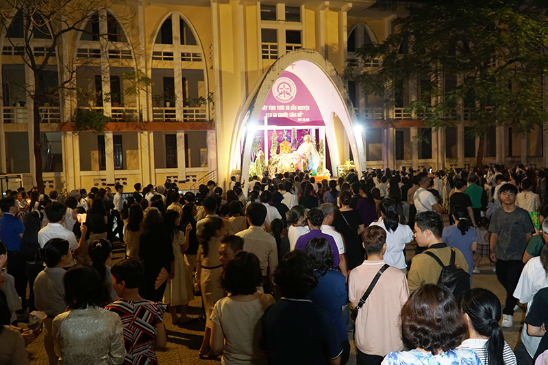 Tiếp đến là giờ Chầu Thánh Thể dành cho cộng đoàn và thành viên các Hội đoàn, ban ngành luân phiên để cùng thức với Chúa và sống với Ngài trong tâm tình cầu nguyện như xưa Ngài đã nguyện cầu tại vườn Cây Dầu “Hãy tỉnh thức và cầu nguyện để khỏi sa chước cám dỗ”.