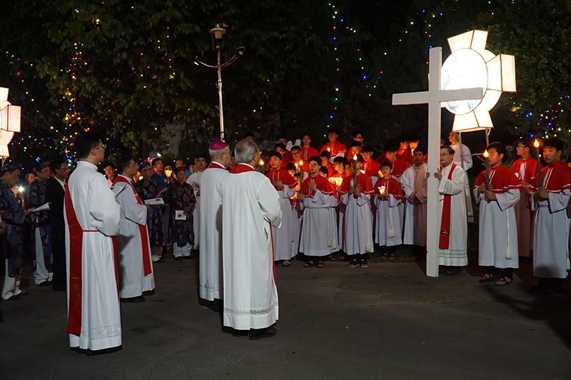 Lúc 20g00, tại tiền đường, Cha Đaminh Phan Hưng, Quản xứ Chính tòa chủ sự khai mạc đêm canh thức Vọng Phục sinh. Khởi đầu là nghi thức Đốt Lửa Mới, Làm Phép Lửa, Thắp Nến Phục Sinh.
