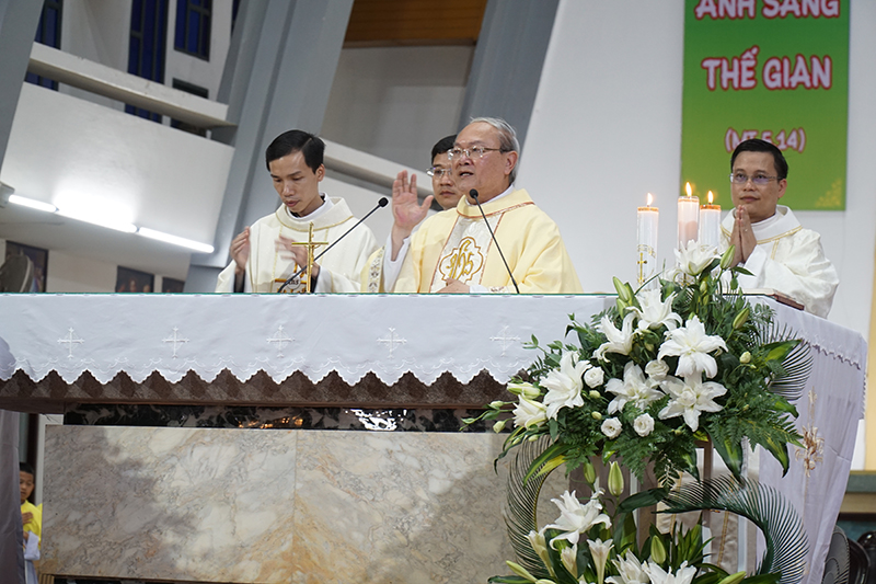 Khởi đầu Thánh Lễ, ngài chào và mời gọi cộng đoàn cầu nguyện cho các Linh mục trong ngày kỷ niệm Chúa Giêsu thiết lập hôm nay.