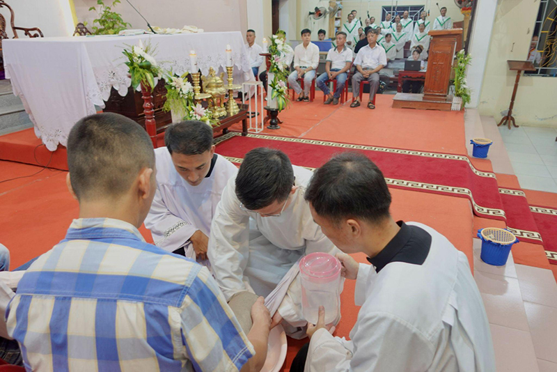 Tiếp đến là nghi thức rửa chân và phụng vụ Thánh Thể.