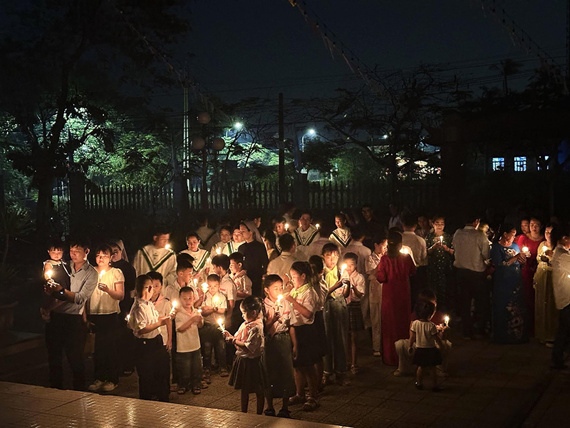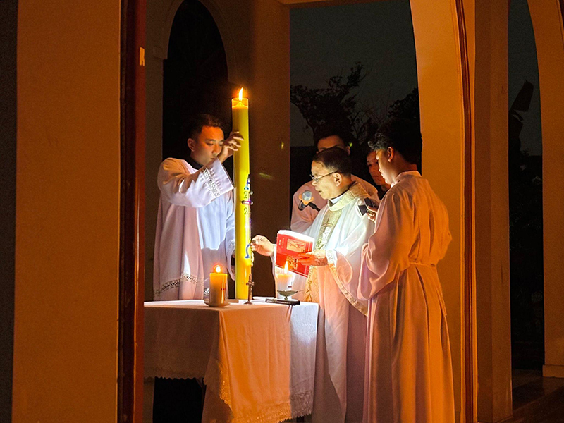Mở đầu là nghi thức làm phép nến, sau đó là kiệu nến vào nhà thờ. Chính đêm nay, niềm hy vọng Phục sinh đã bừng lên trong toàn thể Giáo Hội. Đức Kitô đã chiến thắng sự chết. Ngài đã sống lại, đó là niềm vui, niềm hy vọng và là nền tảng niềm tin của tất cả mọi người Kitô hữu chúng ta.