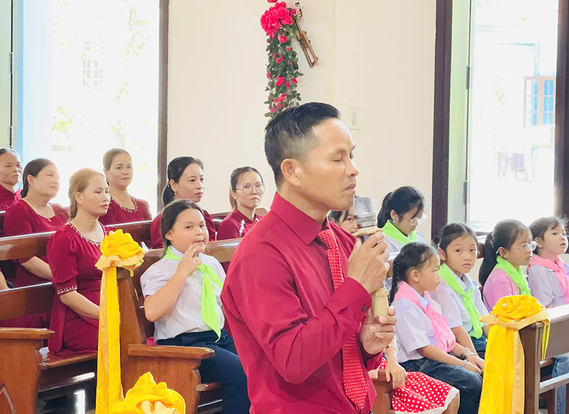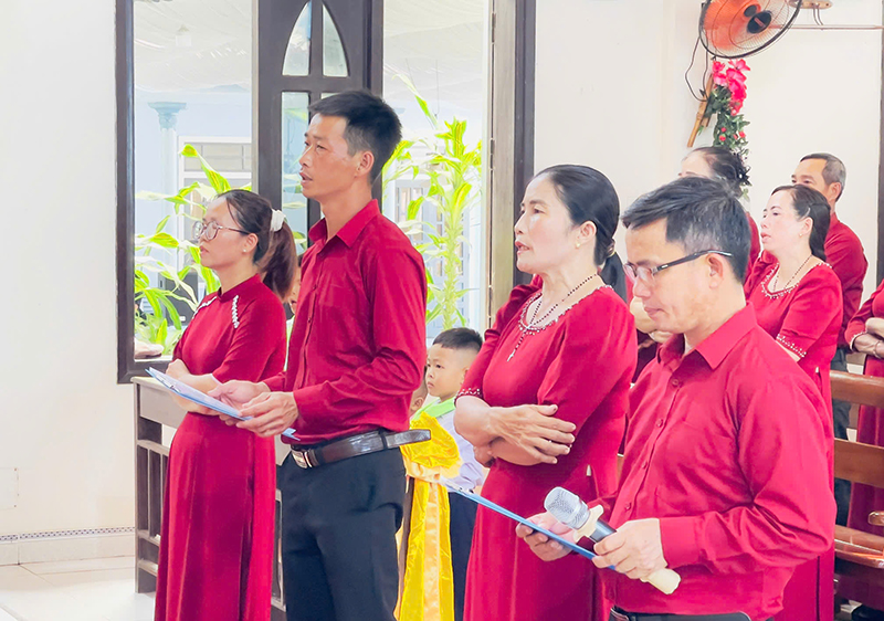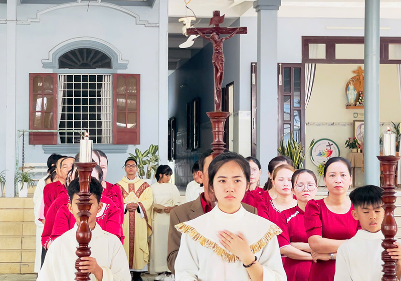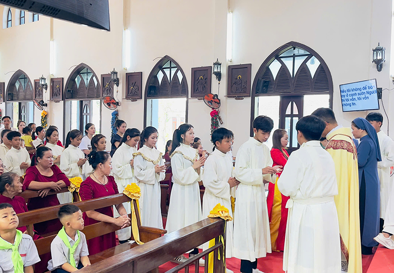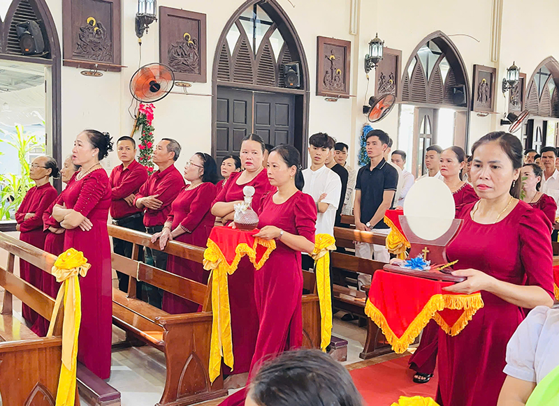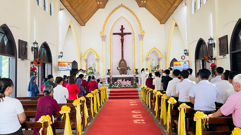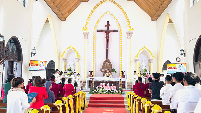 Thánh lễ do Cha Quản xứ Giuse Hoàng Thanh Gia chủ tế, với sự hiệp thông tham dự đông đảo của bà con giáo dân trong và ngoài giáo xứ. Ngay từ đầu, bầu khí trang nghiêm và sốt sắng được thể hiện qua đoàn rước cũng như toàn bộ các phần phụng vụ do chính các thành viên trong Hội Lòng Chúa Thương Xót phụ trách.