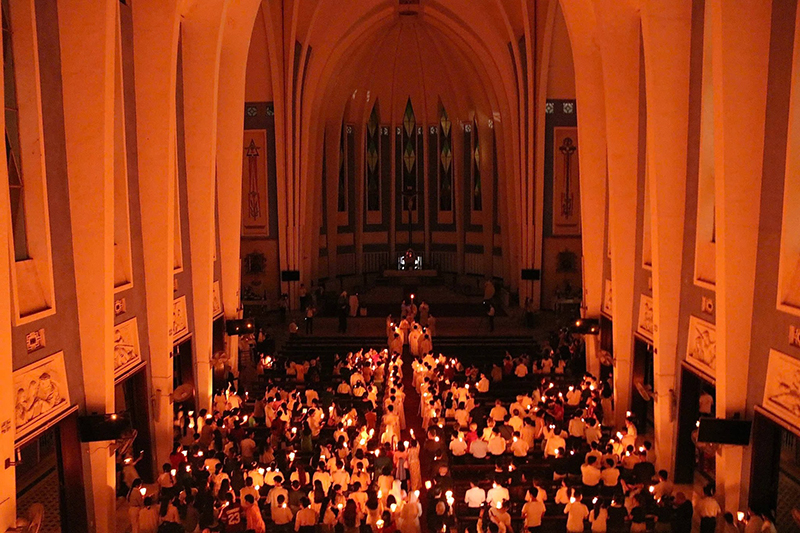 Vào lúc 20g00 ngày thứ Bảy (04.04.2026), khoảng 2.500 tín hữu quy tụ tại Giáo xứ Đức Mẹ Hằng Cứu Giúp Huế để hiệp dâng Thánh Lễ Vọng Phục Sinh do Đức TGM Giuse Đặng Đức Ngân chủ sự, cùng đồng tế với Ngài còn có Cha Giuse Phạm Quốc Giang, Bề trên – Quản xứ và quý Cha trong cộng đoàn DCCT Huế.