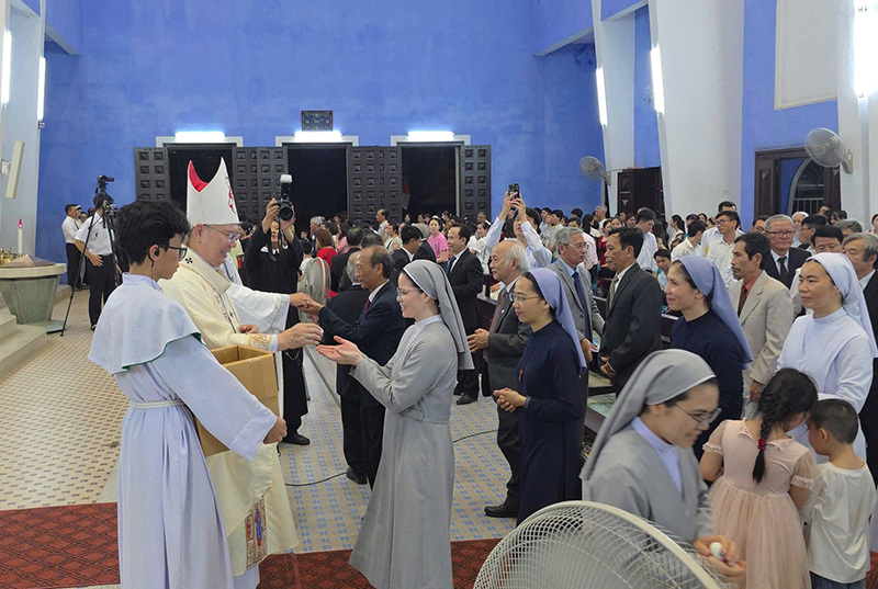 Sau Thánh Lễ, Đức TGM Giuse và quý Cha trao tặng những quả trứng Phục Sinh cho mọi người tham dự. Khuôn mặt hiền hòa, nụ cười ấm áp của vị Cha chung Giáo phận, gần gũi giữa đoàn con, đã làm nên một khung cảnh chan chứa yêu thương và hiệp nhất. Những cử chỉ giản dị ấy lại mang sức lan tỏa lớn lao: trao niềm vui, trao sự sống mới, và gửi đi sứ mạng cho mỗi người “trở nên ánh sáng, mang niềm vui Phục Sinh đến với mọi người”.