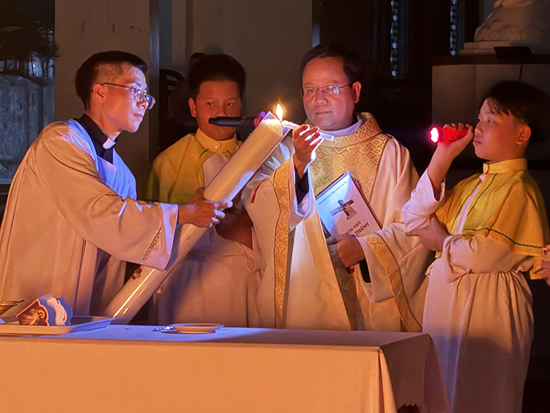 Lễ Vọng bắt đầu trong bóng tối bao trùm, nhưng nhanh chóng được xua tan khi ngọn nến Phục Sinh được thắp sáng – biểu tượng của Đức Kitô Phục Sinh – ánh sáng thế gian.